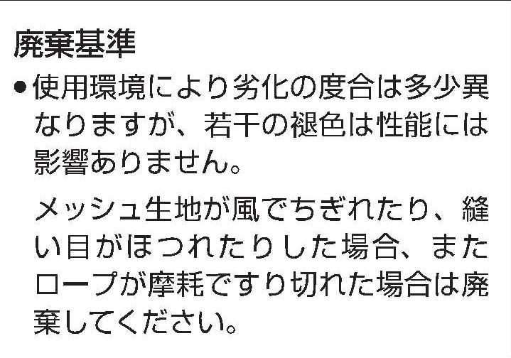 メッシュ材質:ポリエステル / ロープ:クレモナロープ∮8 / 口径芯材:樹脂