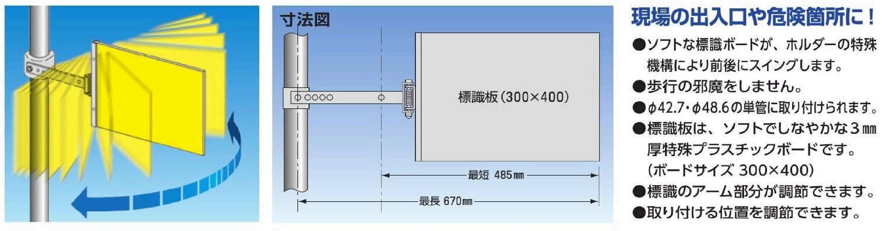SB-22 スイング標識金具付 _作業中□□□以外立入禁止/頭上足もと注意