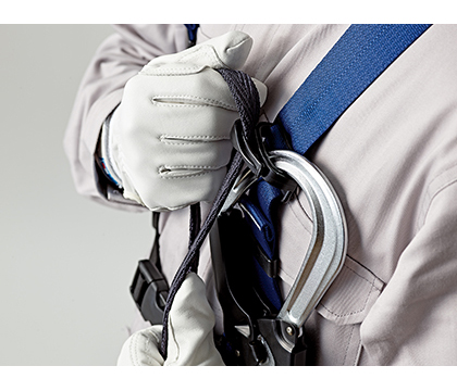 ・肩ベルトに取付けて使用 ・移動時に休止フック掛けとして使用し、フックとロープを一度に固定可能 ・フックを掛けるループ部と帯ロープなどを挟むクリップが一体化