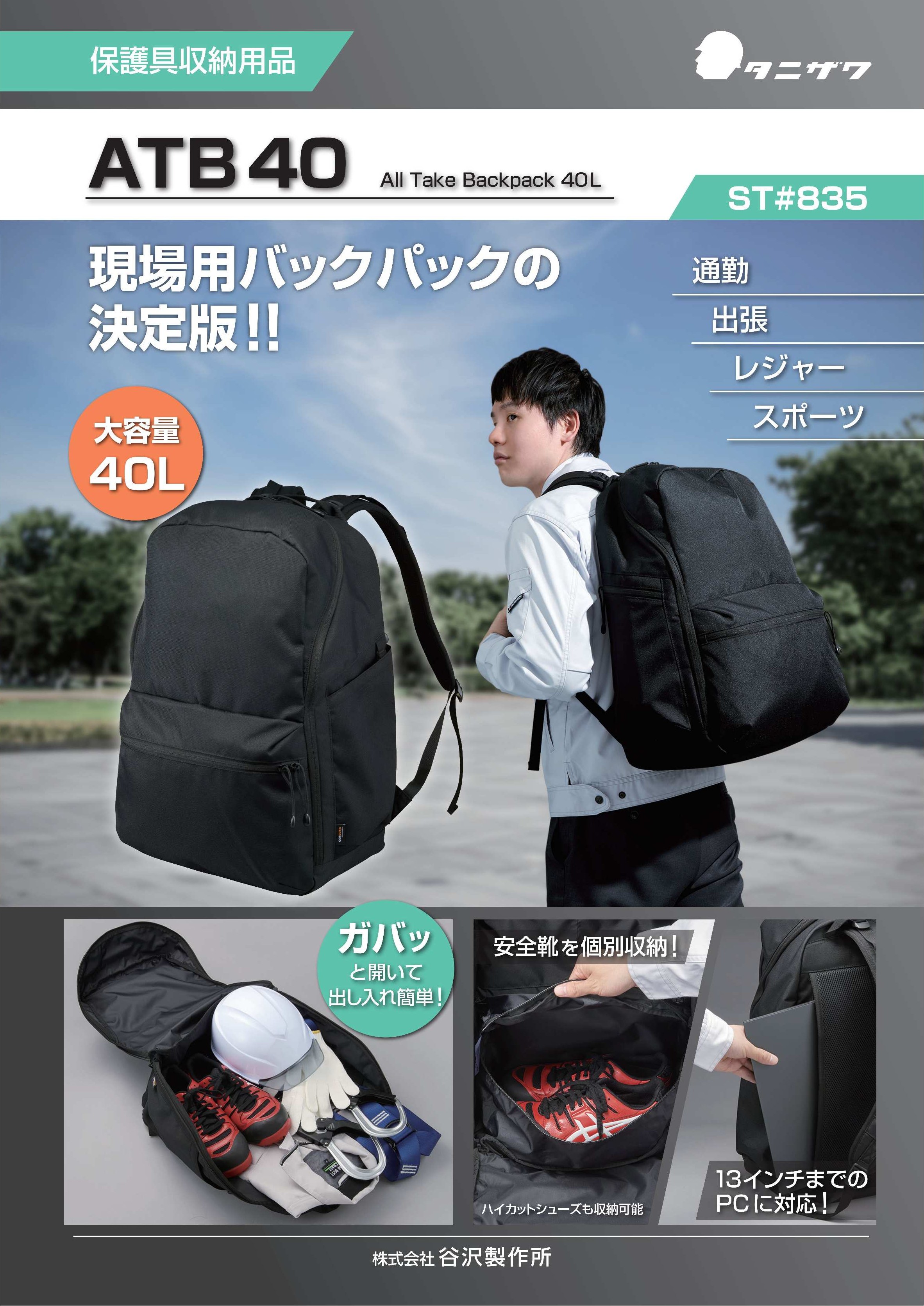 現場用バックパックの決定版! たっぷり収納できる40Lの現場用バックパック ヘルメット・フルハーネス・安全靴・作業服・ノートPCなどが収納可