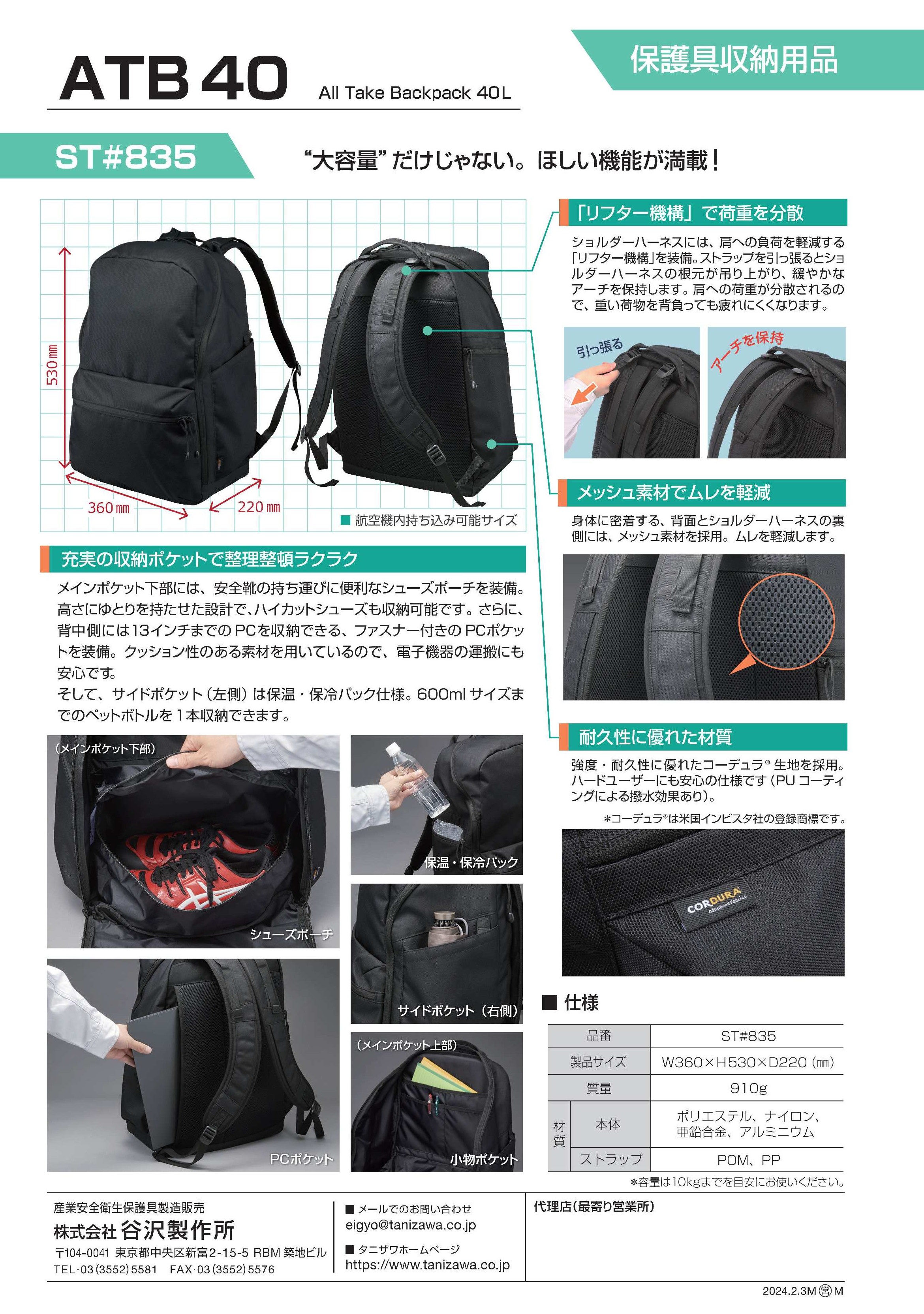 | サイズ | W360×H530×D220㎜ 質量910g |