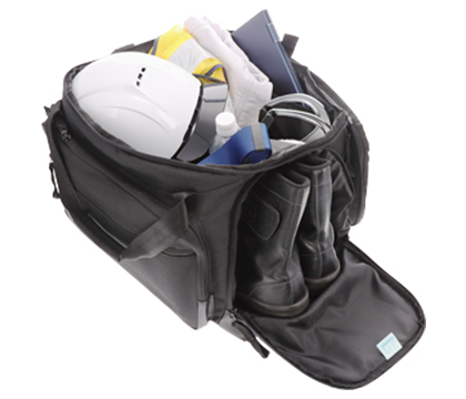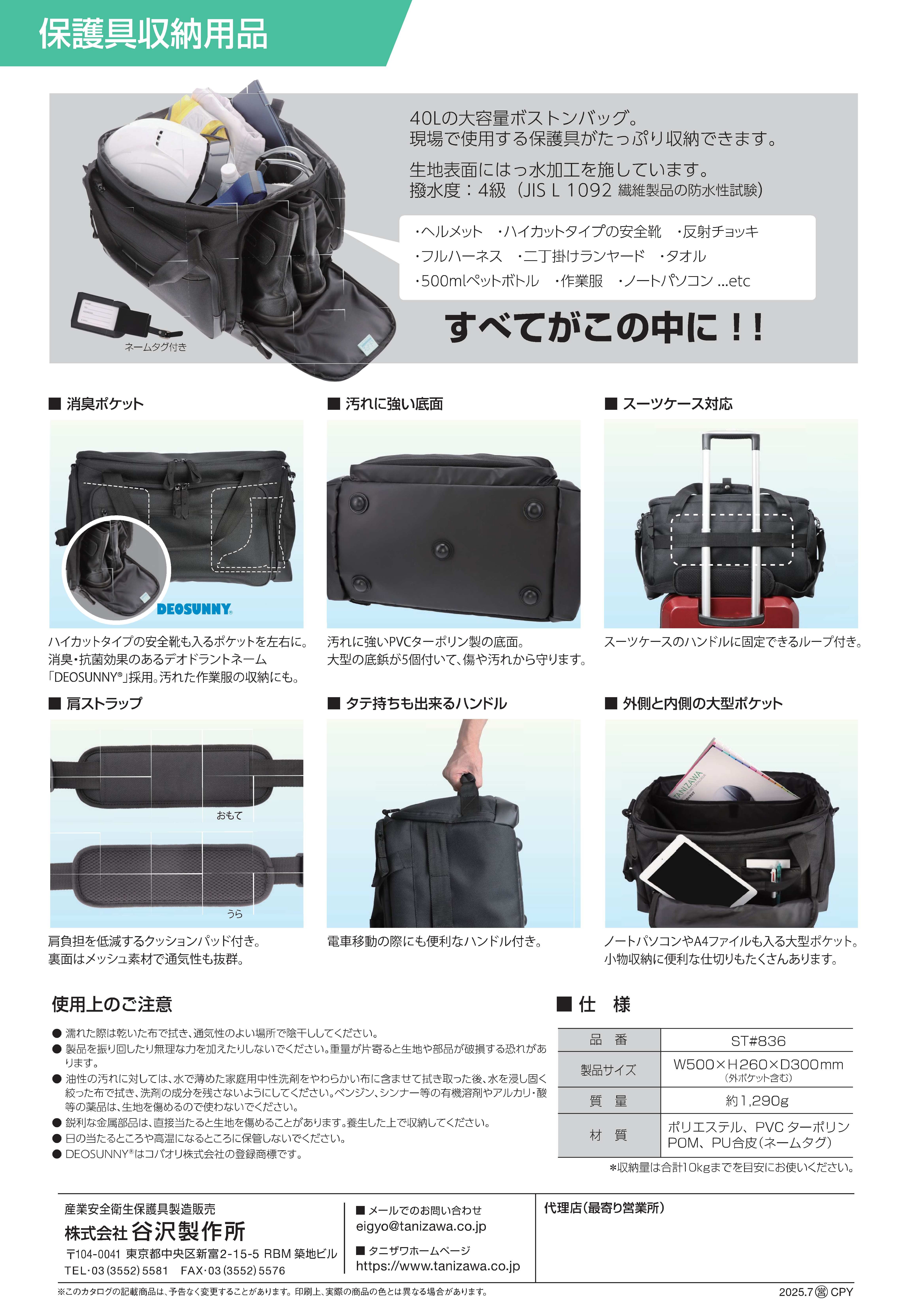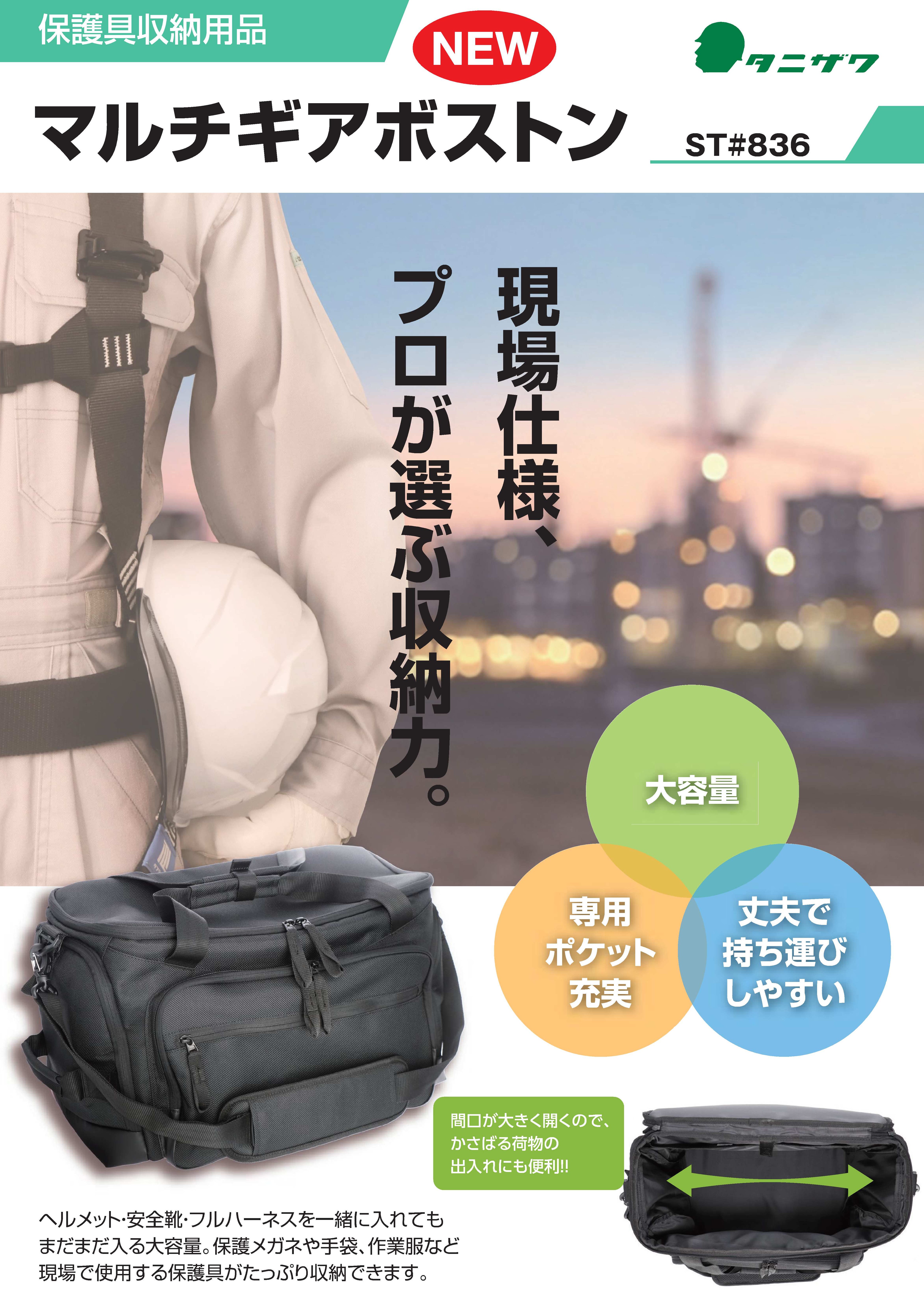 現場仕様、プロが選ぶ収納力。 40Lの大容量ボストンバッグ ヘルメット・安全靴・フルハーネス・作業服など、現場で使用する保護具がたっぷり収納できます。